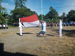 Pengibaran Bendera merah putih berkibar di Halaman Kantor Kecamatan Papalang kabupaten Mamuju provinsi Sulawesi barat.