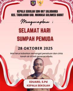 METROSULBAR ( Mamasa)-Pemuda pemudi Indonesia dari Sabang Sampai Merauke Hari ini serentak merayakan Hari Sumpah pemuda tepat hari Selasa tanggal 28 Oktober 2025,pemuda pemudi Bergerak ” Indonesia Bersatu” memperingati hari Sumpah pemuda, merupakan momentum sejarah bangsa Indonesia, meneguhkan semangat Persatuan dan kebangsaan.